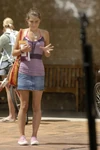 - At school Cleo has a bathing suit top on under her shirt.