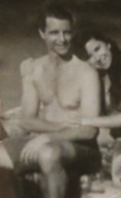 A photograph of Rita as a mermaid alongside her human fiancé, Harry.